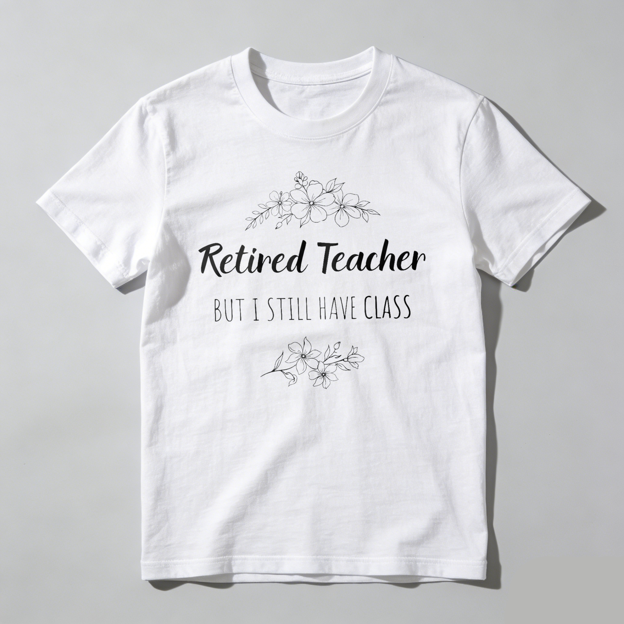 TeeAJX Retired Teacher But I Still Have Class Floral Design T-shirt For Casual Wear Spring Summer